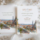 Get your guests excited about your upcoming wedding in Barcelona with this stunning Save The Date card featuring a beautiful watercolor artwork of the city's iconic Park Guell. Barcelona, known for its stunning architecture and rich history, is the perfect destination for a wedding. The city is particularly famous for its unique and colourful art nouveau architecture, with Antoni Gaudi's masterpieces such as the Sagrada Familia, Casa Batllo, and La Pedrera.