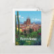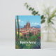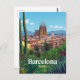 Celebrate the architectural marvel of Barcelona, Spain, with this vibrant vintage-style postcard. The design captures the iconic Sagrada Familia basilica and the city's historic skyline, viewed beautifully through a lush foreground of tropical and Mediterranean plants and cacti. This travel poster is perfect for admirers of Gaudí's work, Spanish culture, and vibrant European cityscapes. Ideal for sending greetings, keeping as a keepsake, or framing as stylish wall art.