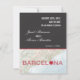 Elegant and modern save the date card. Perfect for a destination wedding based in Barcelona, Spain. Features a map of Barcelona with the Mediterranean Sea. The city name has a heart inside the letter "O". Sophisticated design perfect for a global and trendy couple. Add your own wording or order it like shown.