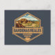 Bardenas Reales done in a vintage style emblem. The Bardenas Reales is a semi-desert natural region, or badlands, of some 42,000 hectares in southeast Navarre.