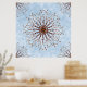 A mandala design created from photos of bare winter tree limbs against a blue sky with wispy white clouds. At the center, the promise of spring sunshine to come.
