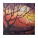 Bare winter tree and dramatic fiery sunset tile