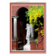 Brick arch, columns, vines hanging, and a statue (Barefoot Kate) located on the grounds of the Vanderbilt Mansion in Hyde Park, NY.