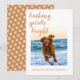 Festive dog theme Christmas holiday card with the text barking spirits bright in elegant script calligraphy and your holiday wishes in stylish modern typography. Simply add your text and upload your favourite photo of your dog. The back of the card has a snowflake pattern on a golden ochre background. Exclusively designed for you by Happy Dolphin Studio. If you need any help or matching products, please contact us at happydolphinstudio@outlook.com.