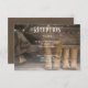 Say "I Do" with a touch of rustic charm and Western flair! Our cowboy ranch-themed wedding reception enclosure card feature a weathered log cabin wall and wood floor background, capturing the authentic essence of the wild frontier. Two pairs of leather-worn cowboy boots rest side by side, symbolising your journey together. Soft string lights twinkle at the top, adding a warm, romantic glow to your invitation. The back showcases a worn dark brown leather design, completing the rustic elegance. Perfect for couples who love the countryside and the cowboy way of life. Lasso the hearts of your guests and set the tone for your unforgettable day. Photo by Melanie Mauer on Unsplash.
