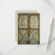 Two rustic country barn doors with a rose floral wreath are featured on this rustic western design.. The door panels have the couple's names and the phrase, RSVP. The cross panels on the bottom of the hinged doors each have a single knot western rope. This design coordinates with the matching Barn Door and Rose Floral wedding invite: