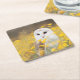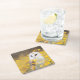 Barn Owl in Yellow Flower Field Square Paper Coaster