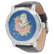 Barn Owl Pink Flowers Blue Watch