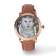 Men's stylish wrist watch with white numerals that features the photo image of a handsome Barn Owl. Great for any owl fan and raptor! Select your watch from several styles.
