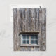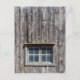 The rustic wood of an old barn, containing a dirty window, glows in the afternoon sun.
