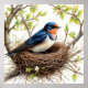 Barn Swallow Nesting on a Blossom-Covered Branch Poster