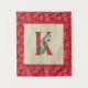 Designed for modern rustic & country theme decor, this illustrated letter/initial features light wood background with barn red wood filled Letter K accented by a watercolor stem of eucalyptus leaves, and a fun red paisley bandanna print border.