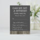 Fun black and white old school barn wood and chalkboard country wedding RSVP.
