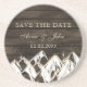 Barn wood Camping Rustic Mountains Save the Date Coaster