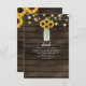 Rustic Barn Wood String Lights Sunflowers Mason Jar Wedding Details Card