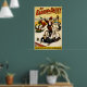 Promotional poster in German for Barnum & Bailey showing performers in street attire clowning with bicycles and rollerskates. "Die Barnum & Bailey Groesste Schaustellung der Welt. Lustige Szenen auf Bicycles und Rollschuhen" (The Barnum & Bailey Greatest Show on Earth. Funny scenes of bicycles and roller skates.)