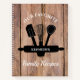 Personalised cookbook to fill with your family's favourite recipes. A rustic wood texture background with baking utensils makes the spiral recipe book a keepsake holiday gift for family.