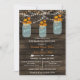 Rustic Barnwood, dangling string lights with Fall maple leaves in a mason jar Fall rehearsal dinner invitations.
