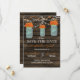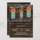 Rustic Barnwood, dangling string lights with orange flowers in a mason jar wedding Save the date. Matching products also available.