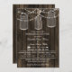 Rustic Barnwood, dangling string lights with mason jars rustic rehearsal dinner invitations.
