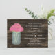 Pink Flowers in Mason Jar, Floral Barnwood Rustic Housewarming Invitation