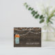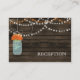 Rustic Barnwood, dangling string lights with orange flowers in a mason jar wedding reception invite. Matching products also available.