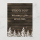 Barnwood Rustic Pine trees, winter wedding Thank You Postcards. Matching products also available.
