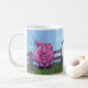 Fun and colourful Farm Animal Cocoa Mug featuring our original Cow, Sheep and Pig in front of a fence with a blue textured sky painted by Traci Van Wagoner (www.tracivanwagoner.com) is perfect for the animal lover you know.