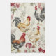 Barnyard Chickens and Botanical Pattern Design Tea Towel