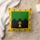 “Per fess indented vert and sable, in base an ermine spot or, a bordure erminois.” Populace badge for the Barony of Granite Mountain in the Society for Creative Anachronism. Back of pillow is a mediaeval-style pattern in coordinating colours.
