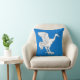 “(Fieldless) A crane rising contourny argent.” Background colour (shown blue) can be changed on request. Back of pillow is a mediaeval-era pattern in coordinating colours.