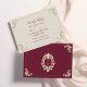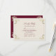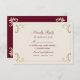 Elegant burgundy and gold RSVP card featuring ornate baroque flourishes and a luxurious monogram on the back. This classic design perfectly complements a formal or vintage wedding suite. Guests can easily indicate attendance and meal preferences. Ideal for fall or winter weddings, pairing beautifully with matching invitations, details cards, and menus from the same collection.