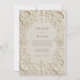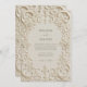 Baroque Elegance Ivory Script Wedding Invitation. Elegant and ornate, this chic wedding invitation features a stunning embossed style ivory baroque floral frame, perfect for a classic and romantic celebration. The intricate detailing of the swirling filigree and delicate blossoms creates a luxurious feel, setting the tone for your formal special day. This wedding stationary design with the script typography evokes a sense of timeless beauty and sophistication, making it an unforgettable announcement for your guests. It’s ideal for couples seeking a traditional yet breathtakingly beautiful way to share their upcoming nuptials and invite loved ones to witness their union.