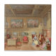 This product features a rare 1888 colour chromolithograph, which offers a glimpse into the Baroque interior decorating style of 17th century upper class home in France. An unfortunate downside of the exquisite murals and symmetrical panelling which covered the walls was the regrettable forgoing of permanently fixed furniture. Instead, moveable pieces were placed where it was convenient, then pushed aside if one was in the mood to stare at the walls. For necessary furnishings, such as beds and wardrobes, it was often the case that the walls would simply be built to accommodate them, allowing the architect to designate a specific location for the cumbersome furniture without having it disrupt the flow and order of the room. The mirror set above the fireplace was a relatively new addition to interior design, one that King Louis XIV made fantastic use of in his Versailles palace.