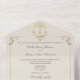 A luxurious ivory and gold baroque all-in-one wedding invitation designed for couples who want timeless elegance with modern convenience. Featuring an ornate baroque monogram crest, soft ivory tones, and refined gold details, this invitation blends vintage sophistication with practical, eco-friendly functionality.