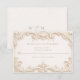 Baroque Ivory Elegant Wedding RSVP Card. This elegant RSVP card features a stunning baroque scroll design in a beautiful ivory hue. The ornate details evoke a sense of timeless luxury and sophistication, perfect for a forma wedding or a classic or traditional wedding. The intricate details offer a touch of old-world romance and grandeur. The delicate acanthus leaf pattern and soft color palette create a truly chic and romantic impression for your guests. Ensure you receive accurate guest counts with this exquisite response card. See matching products like the baroque wedding invitation to complete your wedding suite!