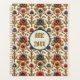Red and blue flowers with gold accents in a baroque design creates a beautiful and elegant planner. A circle bordered in blue, with a pale ivory centre, holds your initials or monogram with the year.