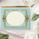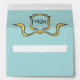 Ornate Baroque Regency Gold Wedding Envelopes. Features hand drawn vintage decorative faux gold frame with a light cream coloured oval centre with crest. The inside flap has a crest with the initials of the couple. All wording can be changed. Faux gold. Perfect for a grandmillenial, fairy tale castle or vintage antique venue. Faux textured light blue background. To make more changes go to Personalise this template. On the bottom you’ll see “Want to customise this design even further? Click on the EDIT using Design tool. From there you can change some of the fonts & some colours, move things around or delete what you need. Hand drawn by McBooboos