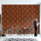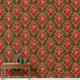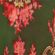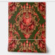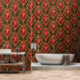 This is a digitally enhanced print derived from a vintage ca. 1900 baroque rococo style pattern of large-scale scrolling foliate and floral medallions dripping with foliate swags and roses. Printed in green, red, pink and white on red ground.