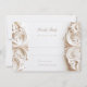 This exquisite wedding invitation and RSVP card set features a sophisticated baroque floral design with intricate ivory and cream-colored patterns on a pristine white background. The elegant script in black and gold adds a touch of timeless class, perfect for a luxurious wedding celebration. The detailed floral motifs create a regal frame around the couple's names and RSVP instructions, making it an ideal choice for those seeking a blend of classic and modern elegance. This set is perfect for upscale weddings, providing a beautiful way to invite and gather responses from your cherished guests.