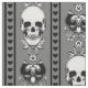This gothic design has an ornate striped pattern of baroque ornaments, skulls, and hearts in a grey colour scheme.
