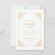 Islamic Muslim Wedding Gold ThankYou Card to be sent after the Nikah or marriage ceremony of the bride and groom. This card has a simple white colour background with a gold script font written on the front. There is a golden vintage baroque leaf swirl decoration in the frame border. Antique. The names of the married couple, date of their wedding and all the information can be personalised by you with the Design Tool on Zazzle. Printable. Editable. Her Line For Design Studio. Contact designer for any changes. Thank you.