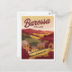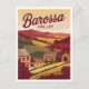 A picturesque and nostalgic depiction of Barossa Valley, one of Australia’s premier wine regions, renowned for its rolling vineyards, charming cellar doors, and rich agricultural heritage. The design captures the lush landscapes dotted with grapevines, rustic farmhouses, and scenic hills, highlighting the valley's vibrant colours during the harvest season. Rendered in a vintage style, the artwork evokes the warm, inviting atmosphere of Barossa Valley, inviting viewers to indulge in its fine wines, local produce, and the serene beauty of the Australian countryside.