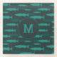 Barracuda Fish Blue Monogram Glass Coaster. Perfect for anyone who loves marine wildlife, the ocean, and scuba diving.