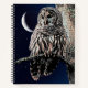 Barred Owl and Crescent Moon in Starry Sky Notebook