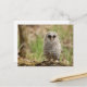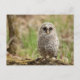 This postcard features a photo of a cute barred owl fledgling / owlet.