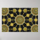 Digital mandala array made wiht photos of yellow and white barrel cactus flowers on a grey thorn background as a poster.