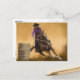 A cowgirl races around the barrels in a rodeo competition event. Rendered in pastels by award winning artist Kathie Miller.