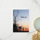 "Barren Trees at Sunset" Thank you card is a peaceful scene taken of trees in early spring, still empty of their foliage and showcasing their limbs with a background of the sun setting at dusk bringing a sigh to the end of the day and to say 'thank you' for the heartwarming gesture.