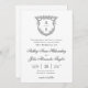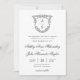 The invitation's design is clean and uncluttered, allowing the intricate details of the crest and the calligraphy to stand out prominently. This simplicity ensures that the focus remains on the essential elements of the invitation, creating a classic and formal aesthetic.